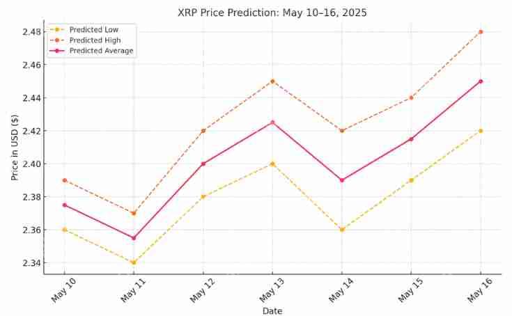 价格预测显示,5月10日至16日的价格将持续上升至$2.45至$2.48的范围,短期内$2.50的阻力将作为心理障碍。