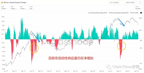 图12:2016年至今非流动性供应量变化与BTC价格对比