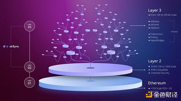 zkSync Layer2解决方案将提供必要的基础,在此基础上,生态系统可以在不降低其安全性或分散性的情况下扩展以太坊。除此之外,我们的愿景是在Layer3及更高层实现无限的可扩展性,从而实现大规模采用。