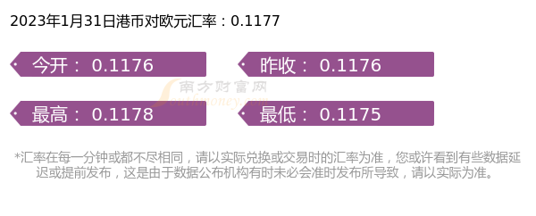 今日一港币是多少欧元(2023年1月31日)